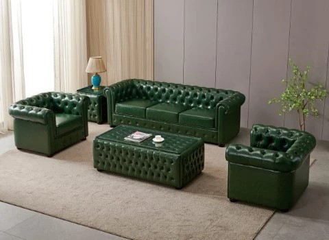 • سبک کلاسیک و سنتی: چرم فول گرین یا تاپ گرین با رنگ‌های گرم و طبیعی مانند قهوه‌ای، زرشکی یا سبز تیره، حس اصالت و لوکس بودن را به فضا می‌بخشند.