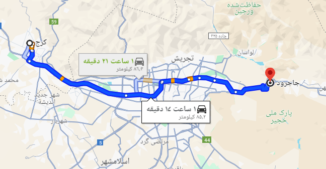 ۱. فاصله دقیق کرج تا جاجرود چقدر است؟