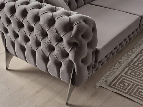 این رایجترین و شناختهشدهترین نوع لمسهکاری است که مشخصه اصلی مبلهای چسترفیلد محسوب میشود. در این روش، دکمهها به عمق زیادی در فوم فرو رفته و پارچه به شدت کشیده میشود. نتیجه کار، ایجاد فرورفتگیهای عمیق و برجستگیهای مشخص است که حسی از حجم و عظمت را القا میکند. لمسهکاری عمیق معمولاً با ظاهری کلاسیک و لوکس همراه است و برای فضاهای بزرگ و دکوراسیونهای مجلل مناسبتر است.