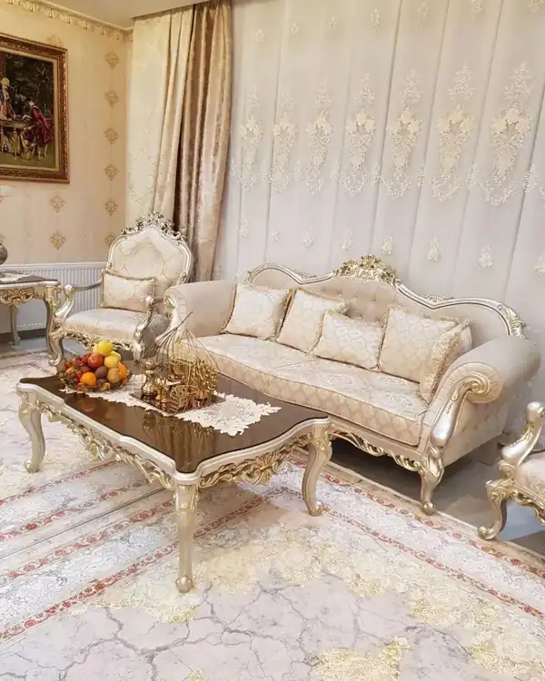 مبلهای استیل با طراحیهای پرکار، منبتکاریهای ظریف و استفاده از چوبهای مرغوب، ظاهری باشکوه و لوکس دارند. این مبلها اغلب برای فضاهای بزرگ و دکوراسیونهای مجلل مناسب هستند و حس شکوه و تجمل را القا میکنند. پارچههایی با طرحهای کلاسیک و رنگهای طلایی، کرم یا بژ معمولاً در این سبک استفاده میشوند.
